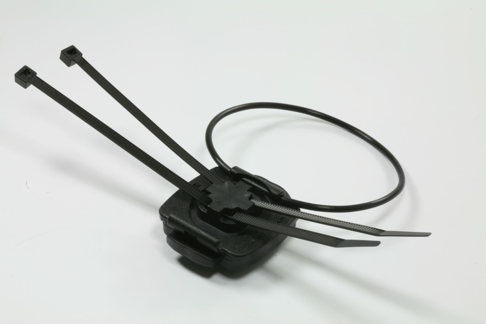 Uchwyt mocuje się do kierownicy za pomocą opasek zaciskowych, wnętrze zabezpieczone jest gumową podkładką co zapobiega uszkodzeniu kierownicy roweru i niweluje drgania.